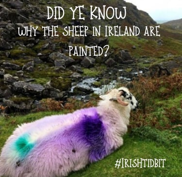 Sheep in Ireland are painted for identification and breeding management, helping farmers distinguish their flocks in large, unfenced pastures and track which ewes have mated using colored dye on rams